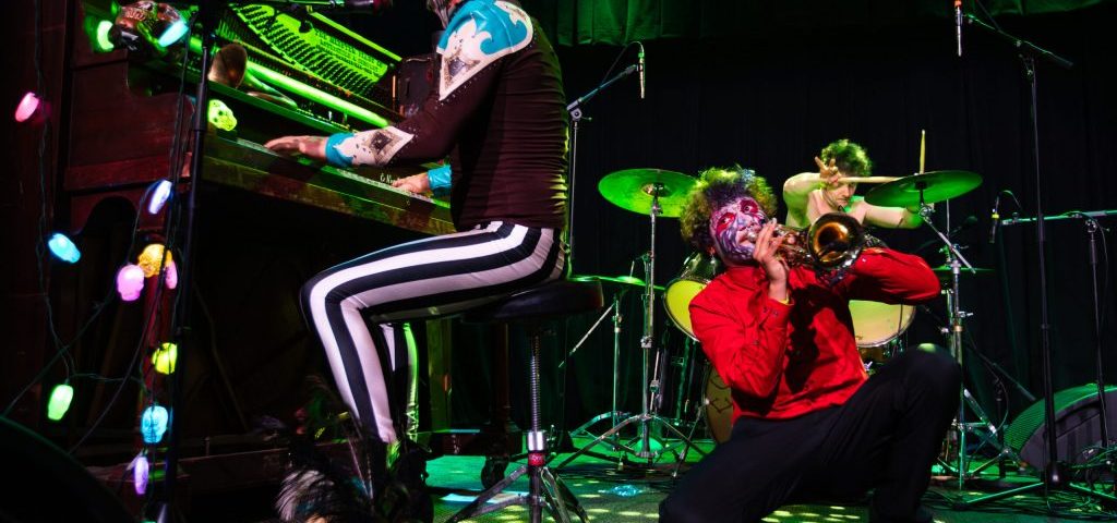 Inzwischen verstärkt durch einen kompletten Bläsersatz mit Ventilposaune, Trompete und einer Tuba, die klingt wie eine Horde koffeinhaltiger Elefanten im Galopp, liefert die Band ein musikalisches Spektakel, in dem Punk, Jazz und pures Chaos Hand in Hand tanzen.